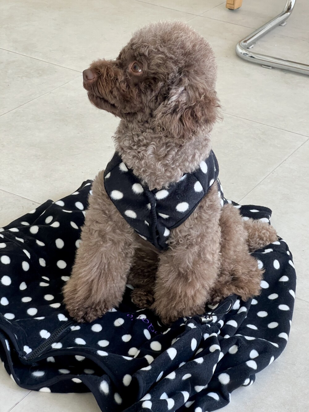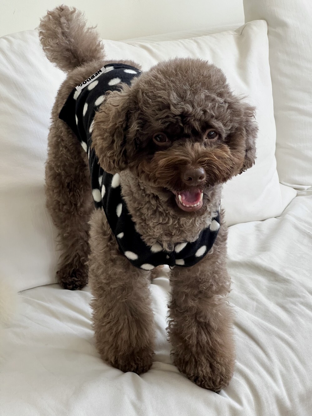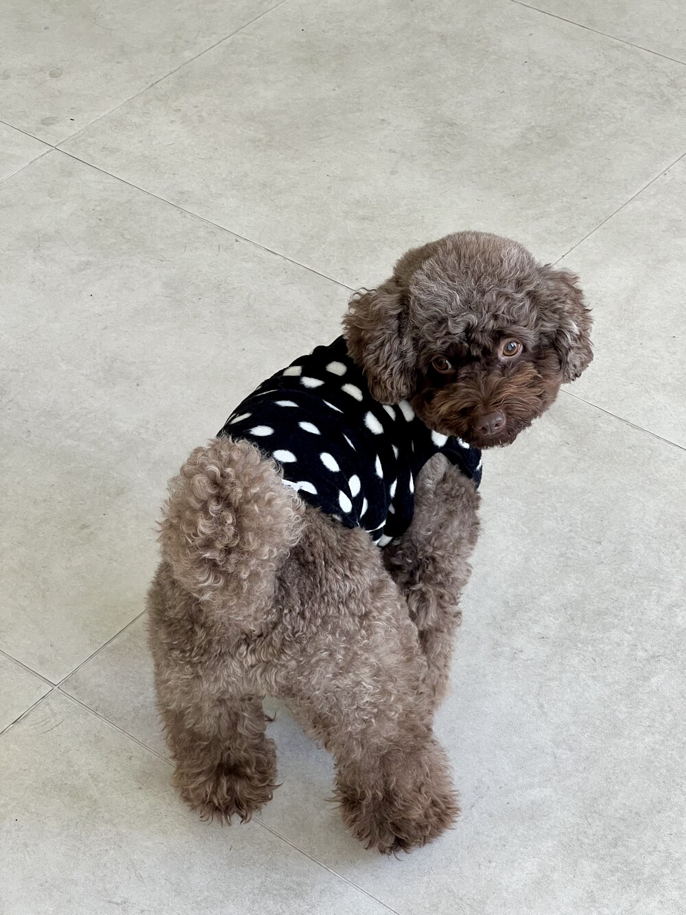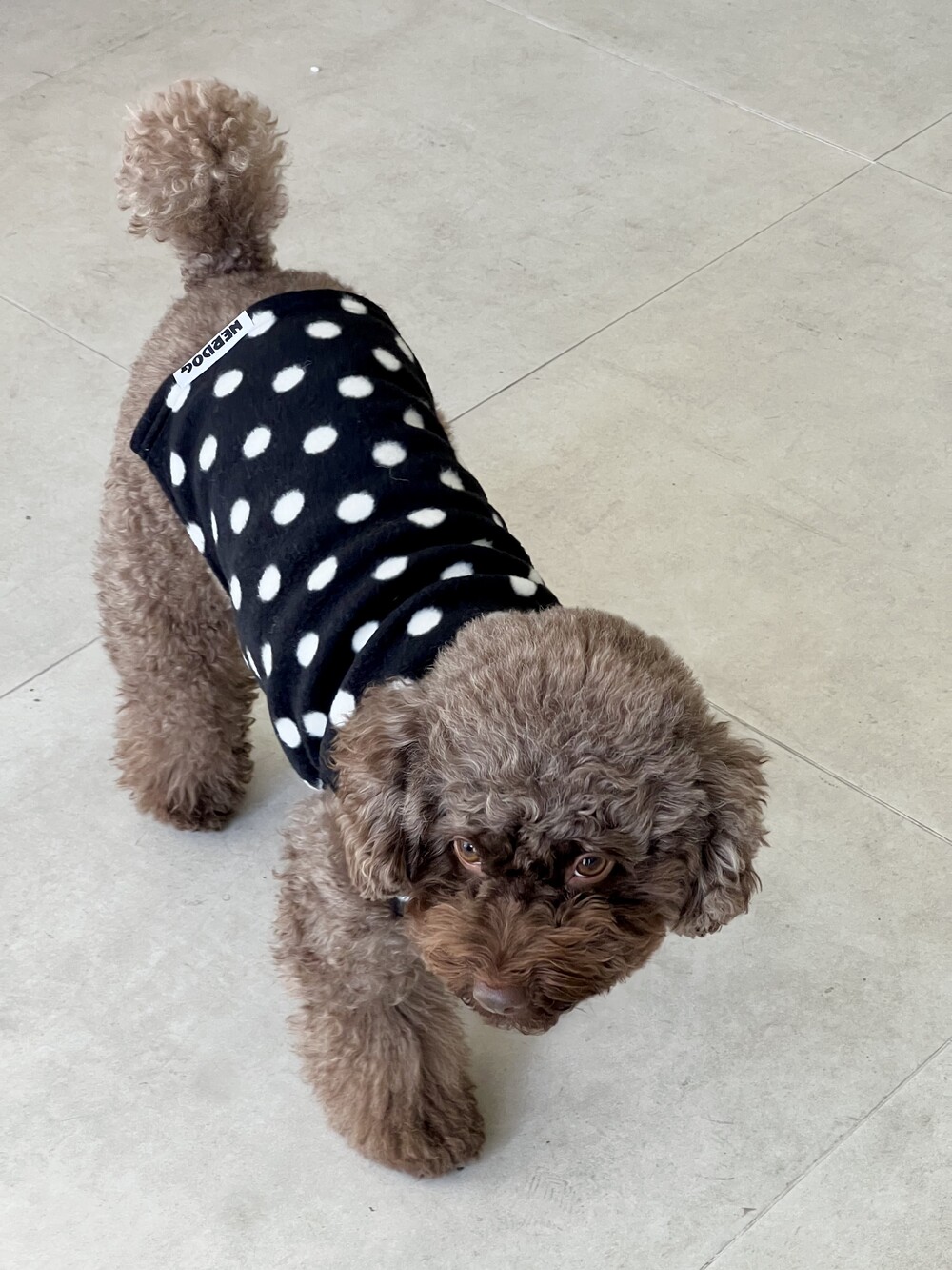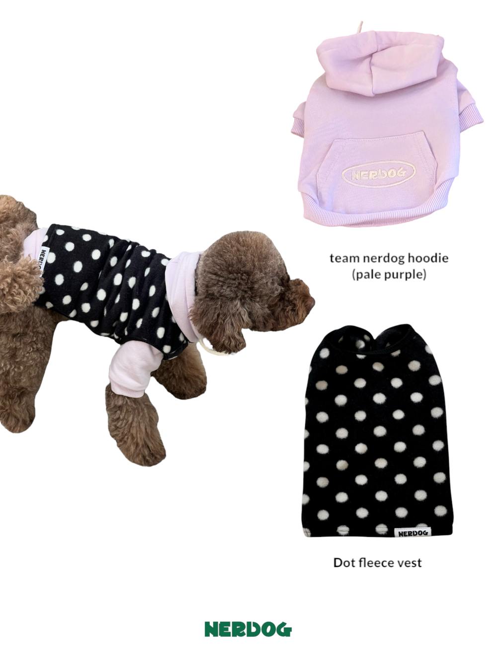 널독이 선보이는 도트 베스트는 팔이 없는 디자인으로 옷을 입지않는 강아지에게도 부담 없이 착용이 가능해요. 다양한 옷과 레이어드가 가능하고 수면조끼로 활용 가능한 유연함을 제공합니다