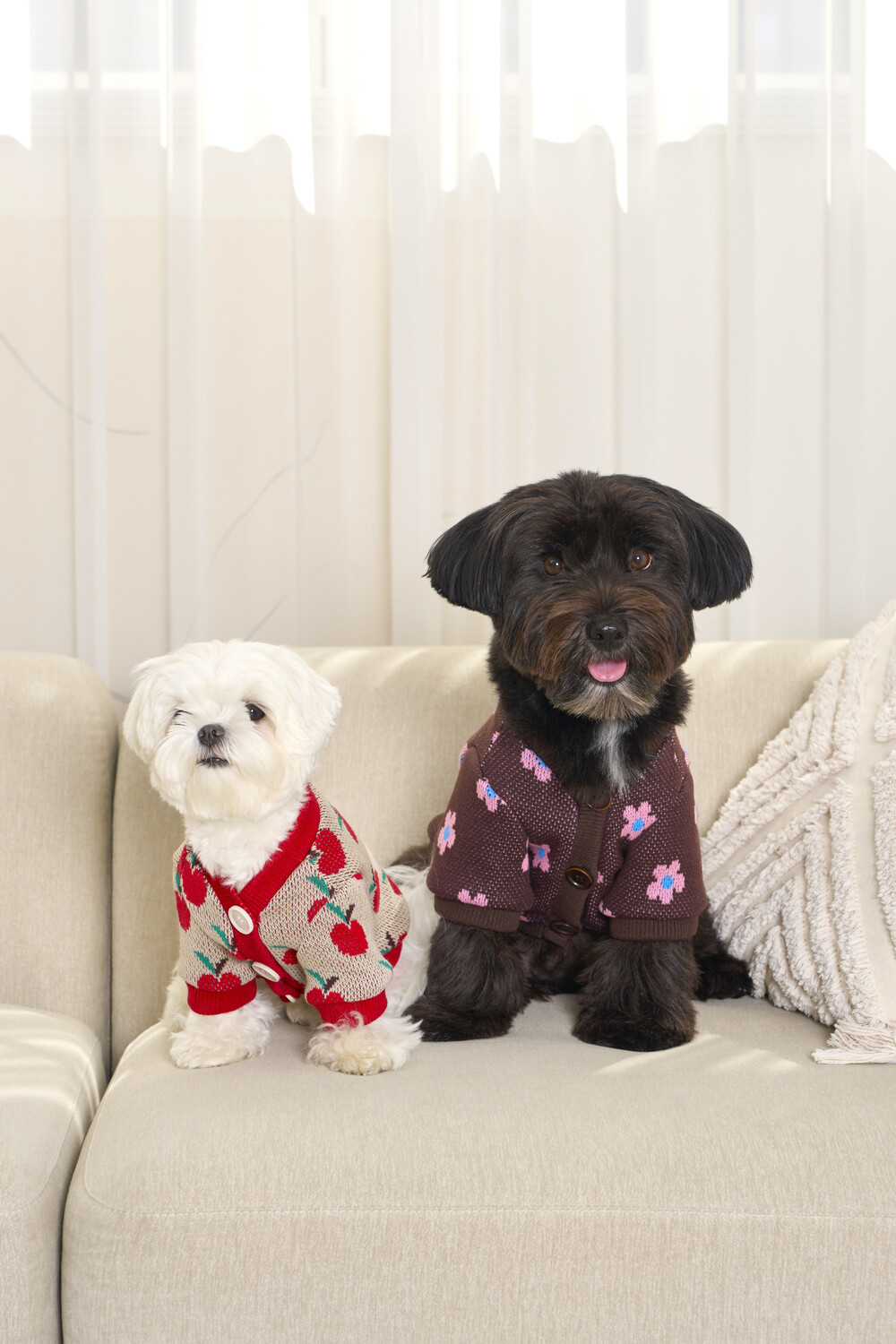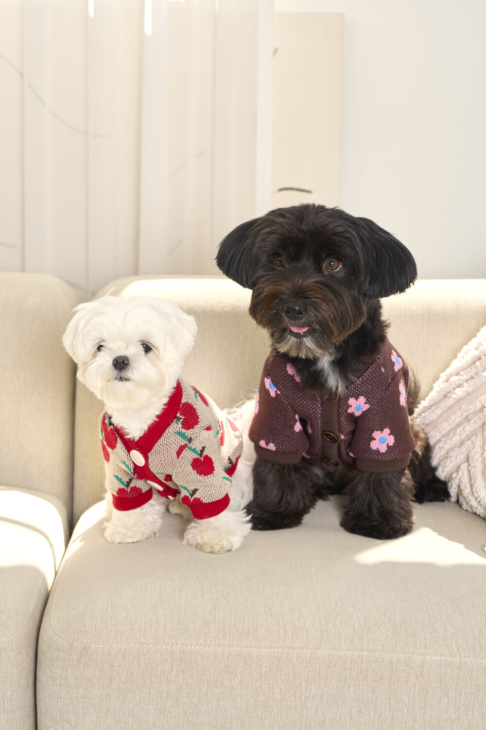 자카드 짜임의 그래픽 패턴이 돋보이는 니트 가디건입니다.