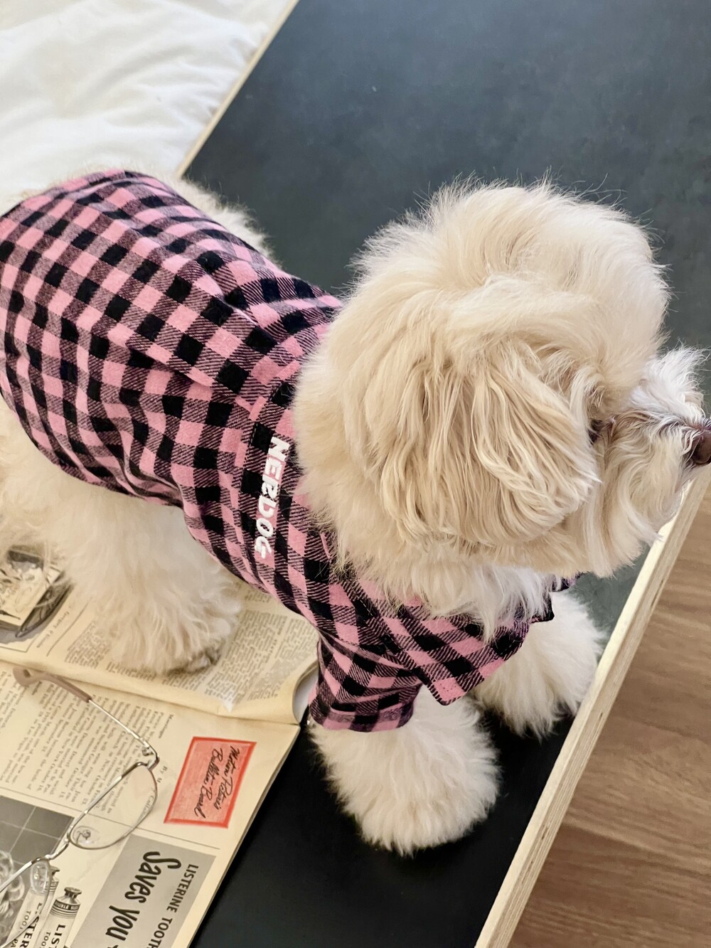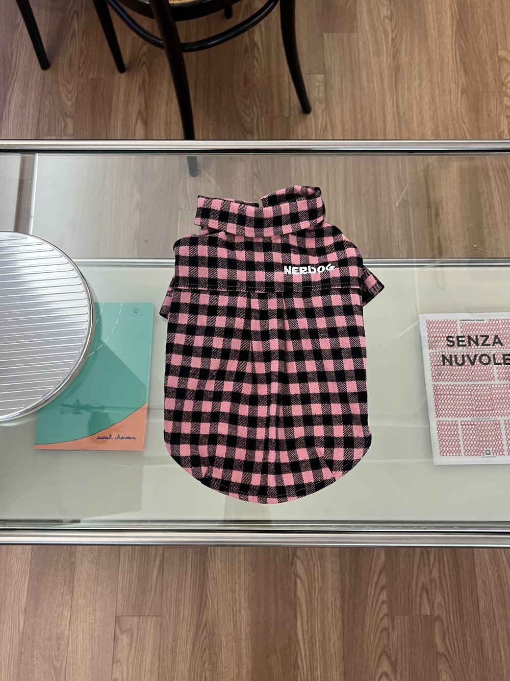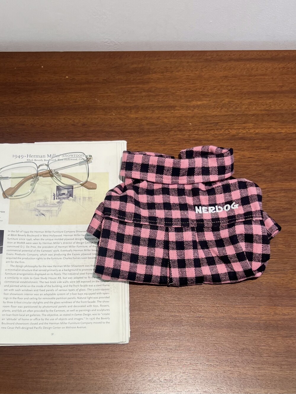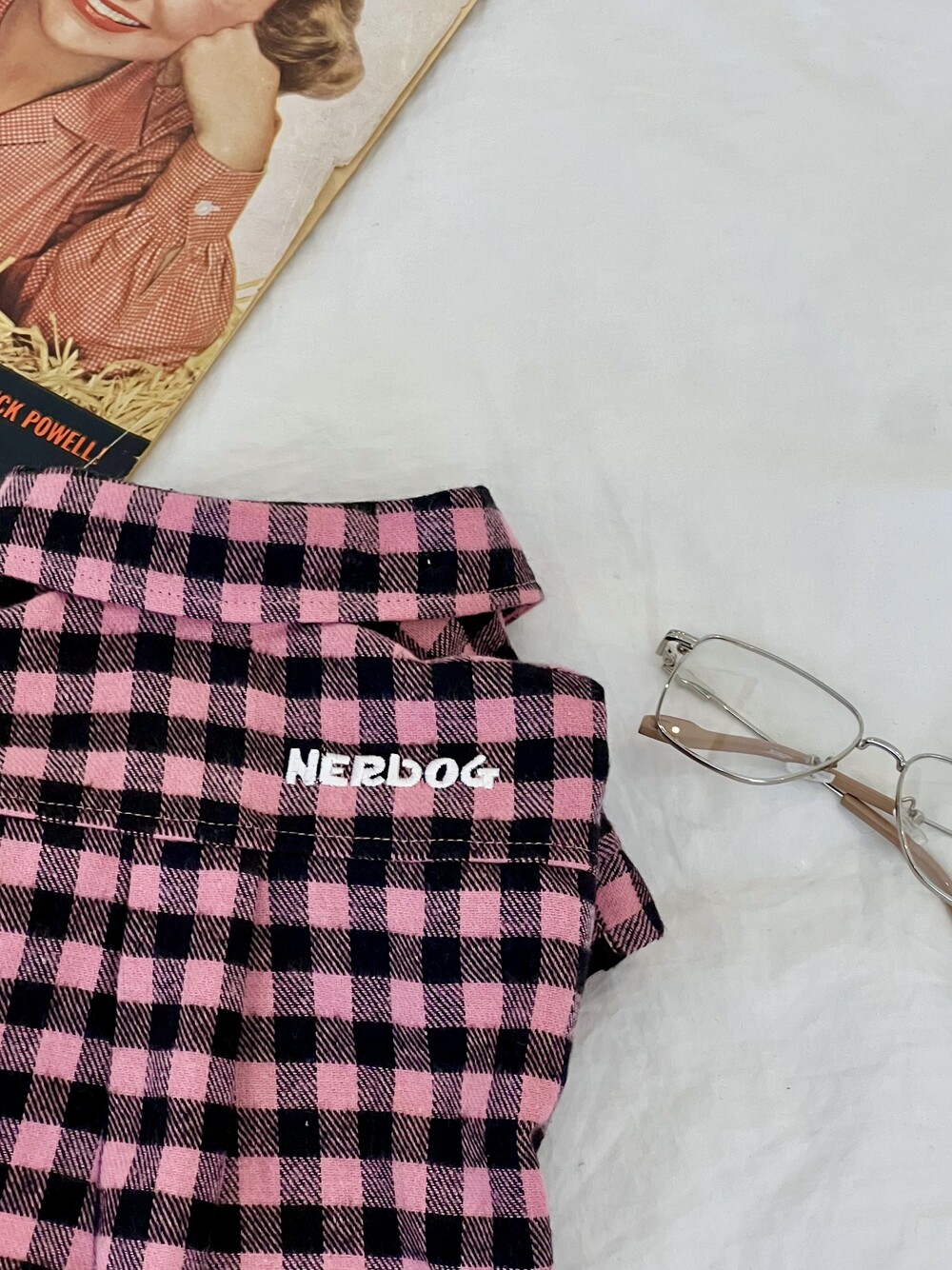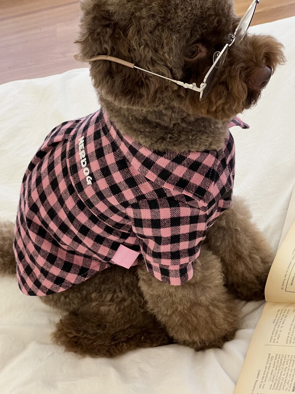nerd dog check shirt (pink)
