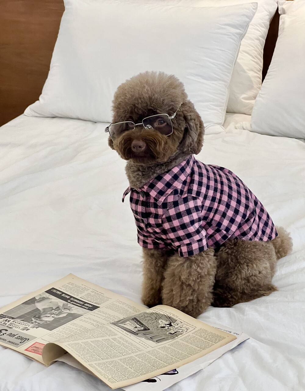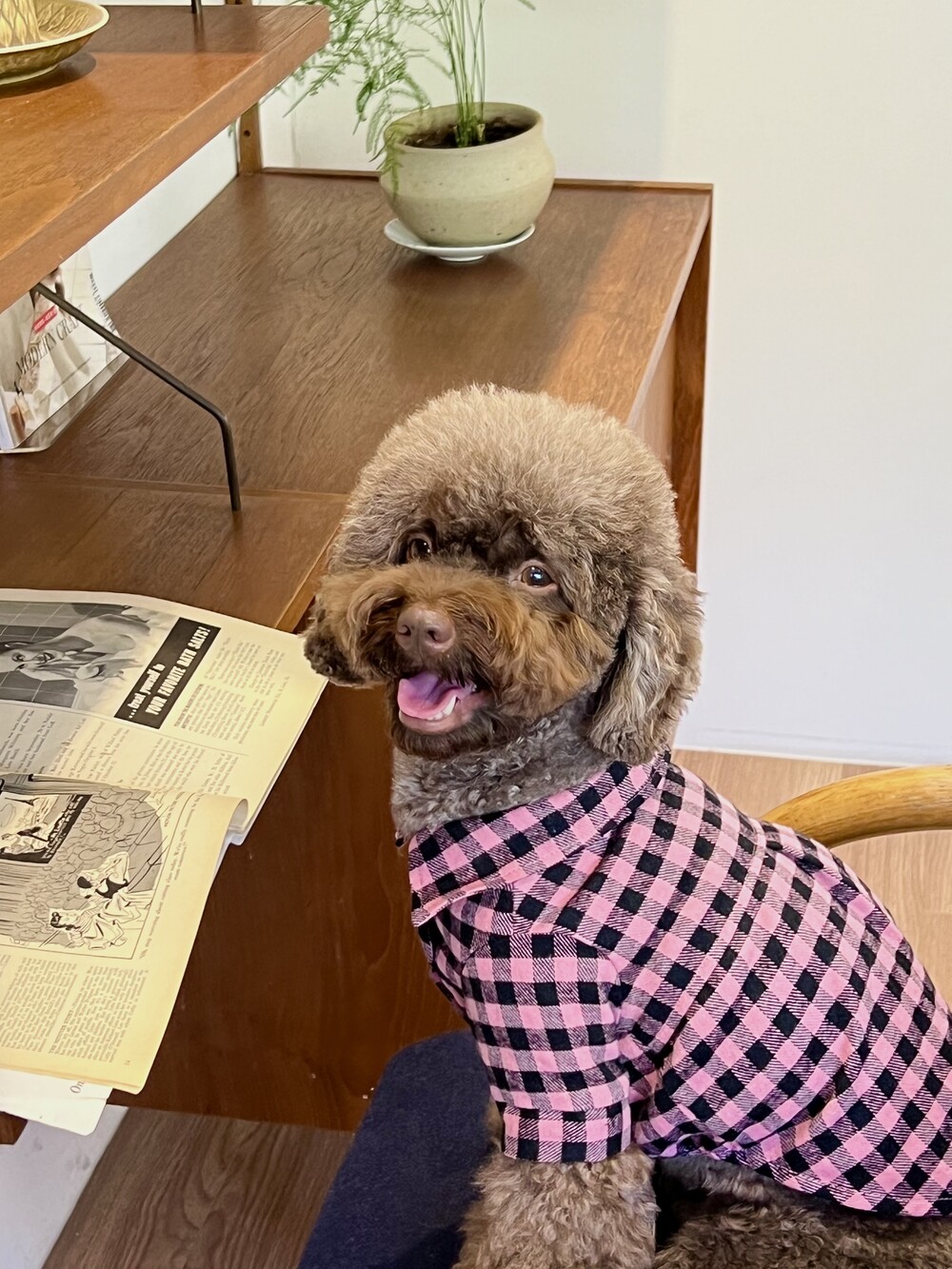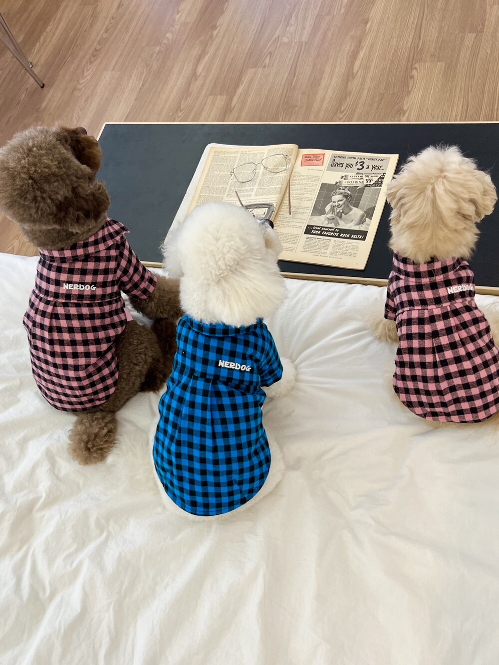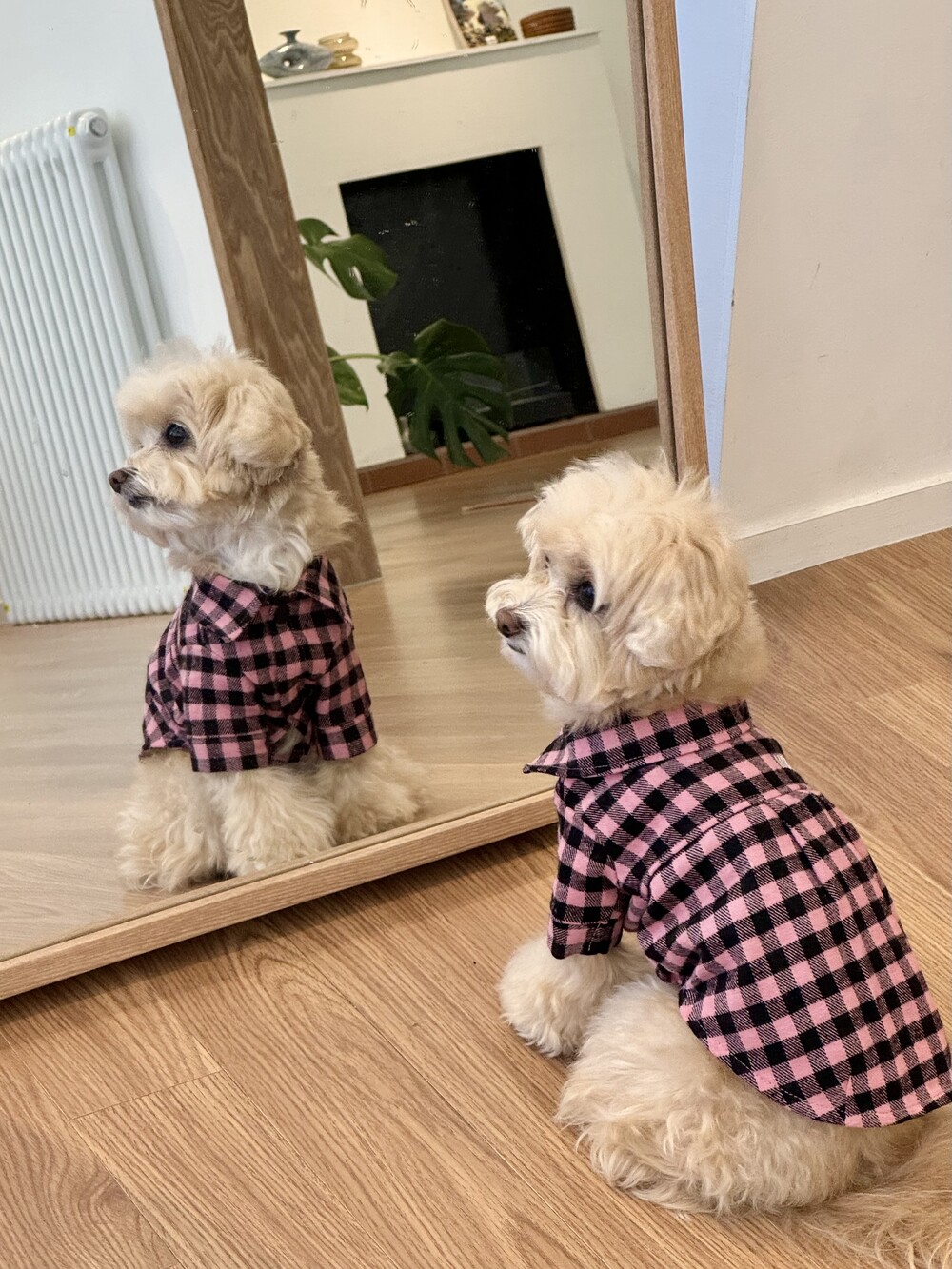 nerd dog check shirt (pink)