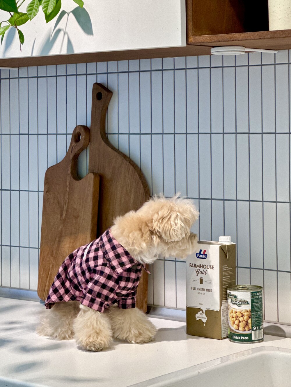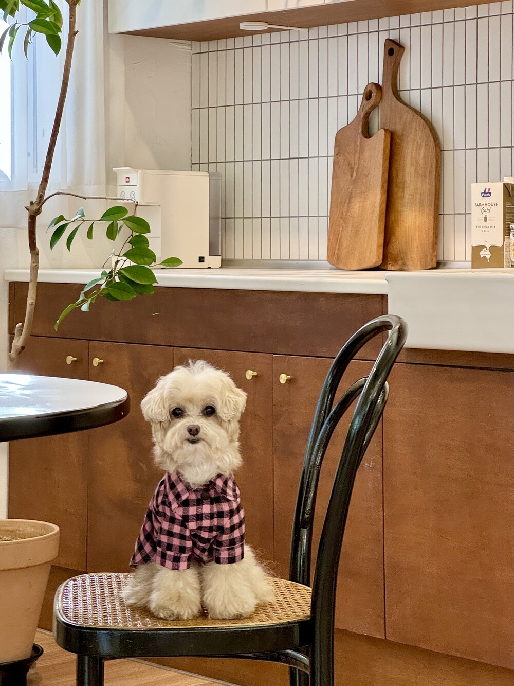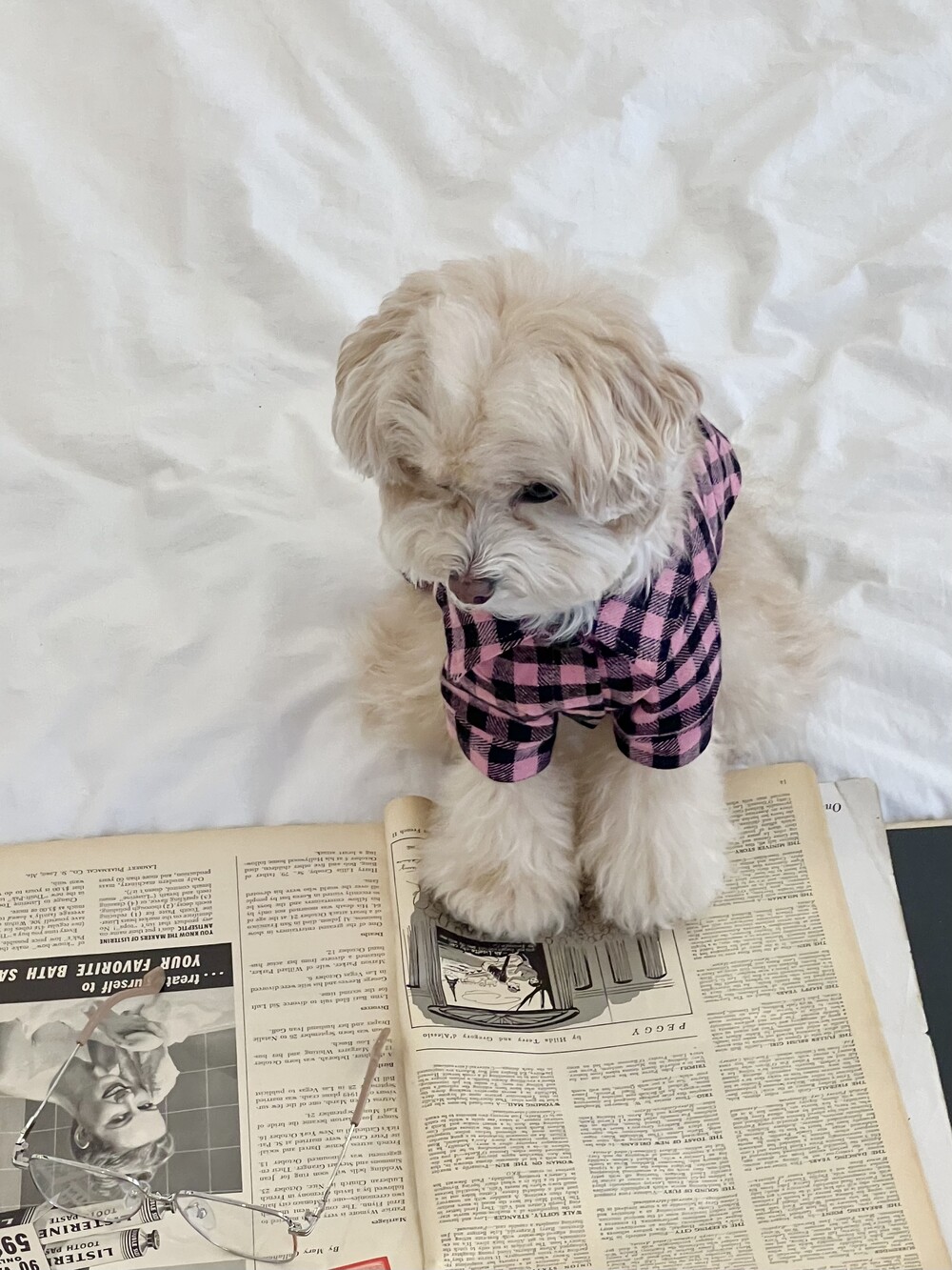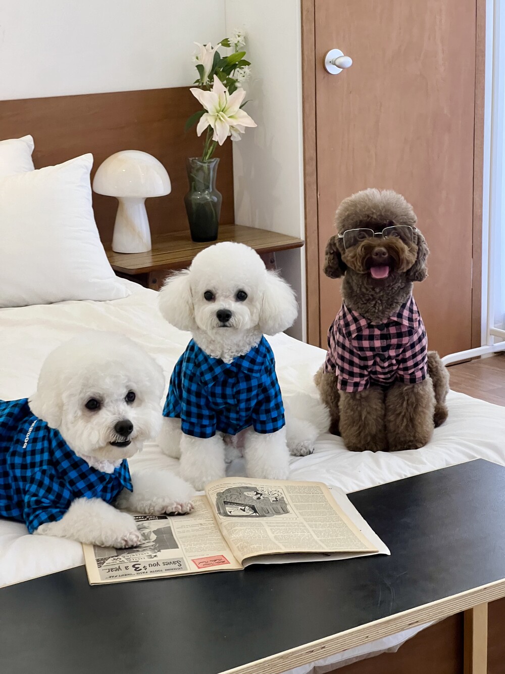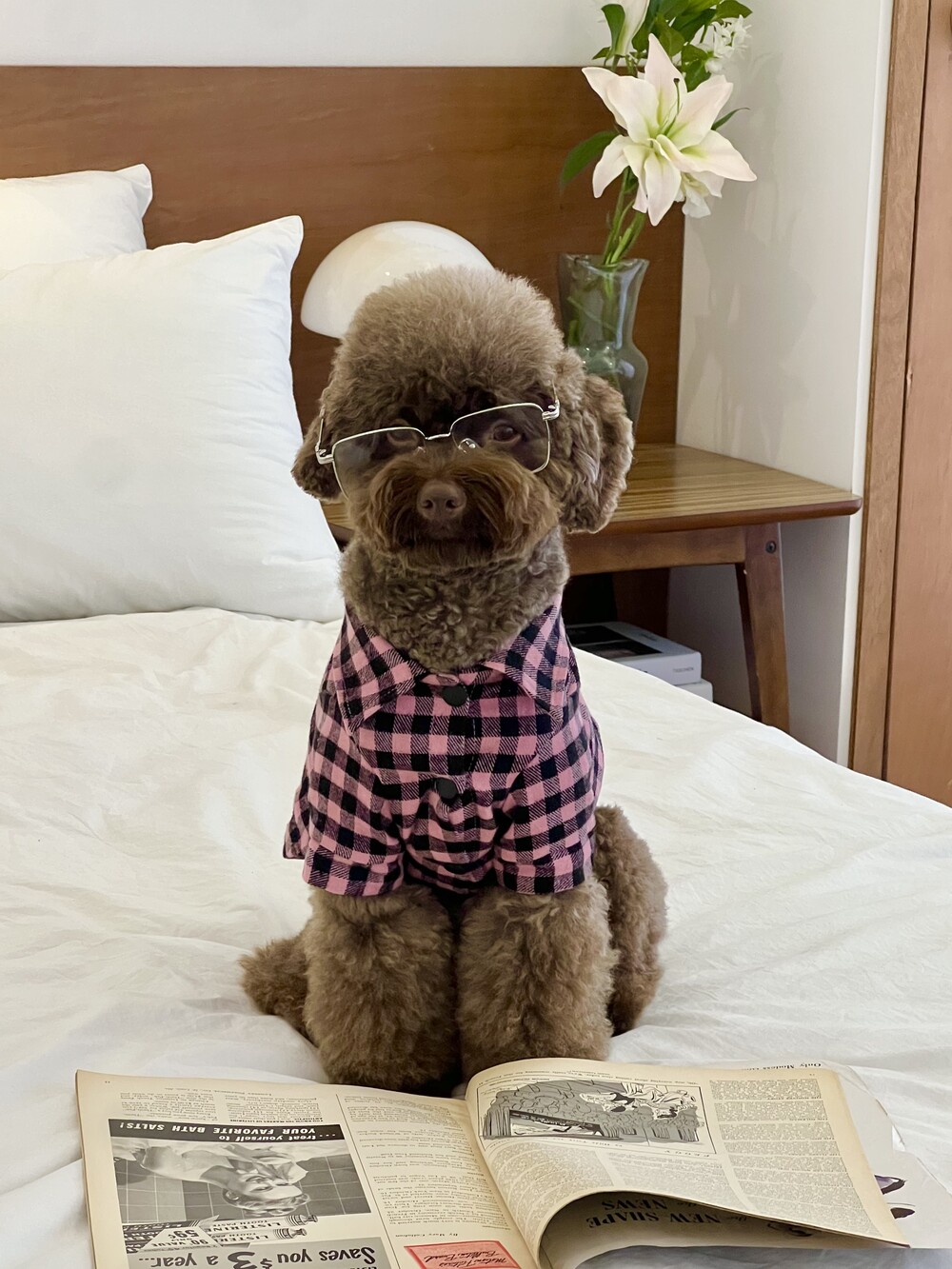 nerd dog check shirt (pink)