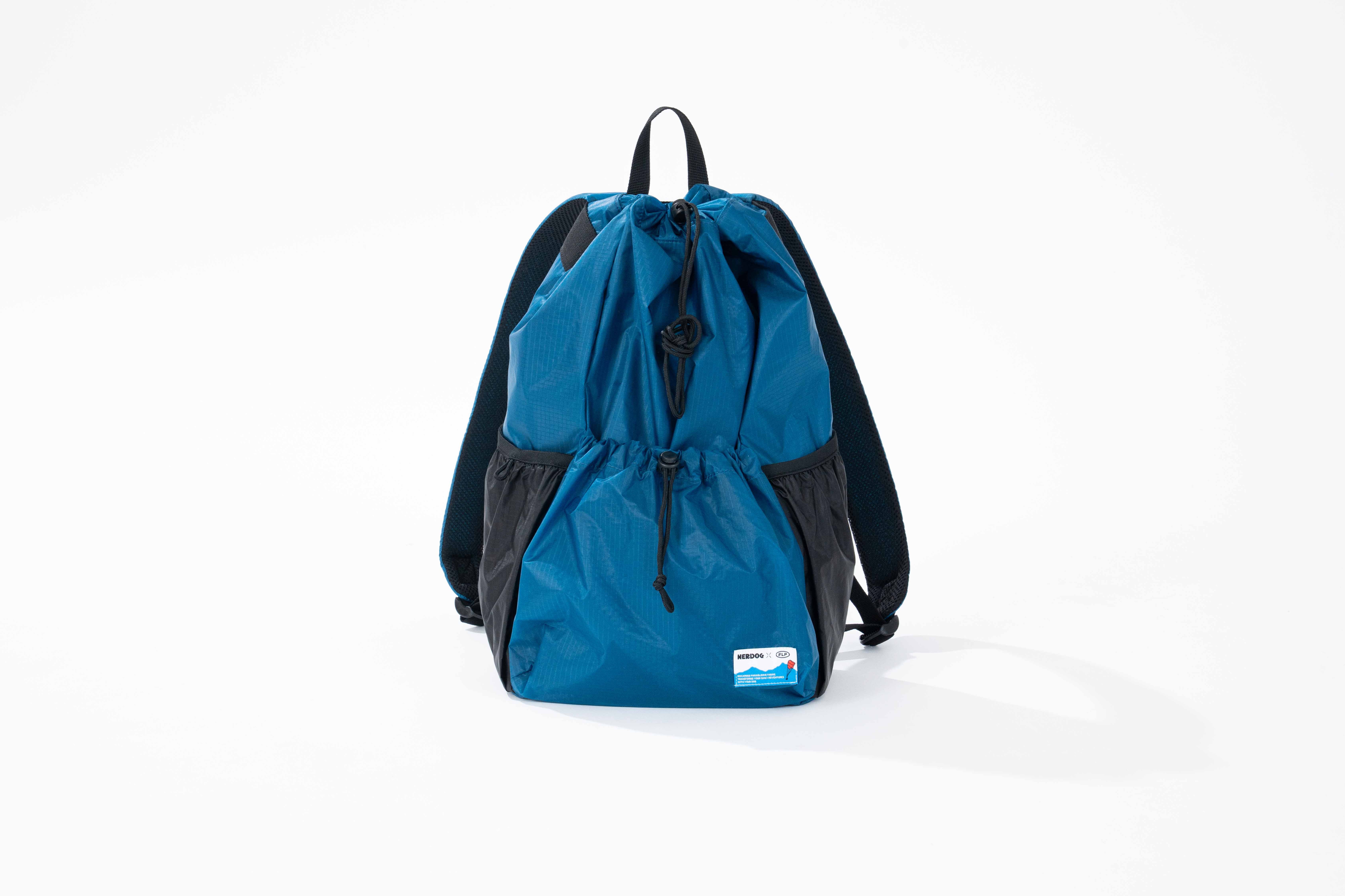 업사이클 패러글라이더 원단 특유의 경량감과 바스락한 질감을 그대로 살린 스트링 백팩입니다.