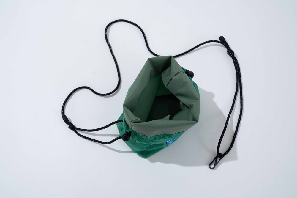 패러글라이더 원단의 경쾌한 텍스처를 가장 가까이 느낄 수 있는 스트링 크로스백입니다.