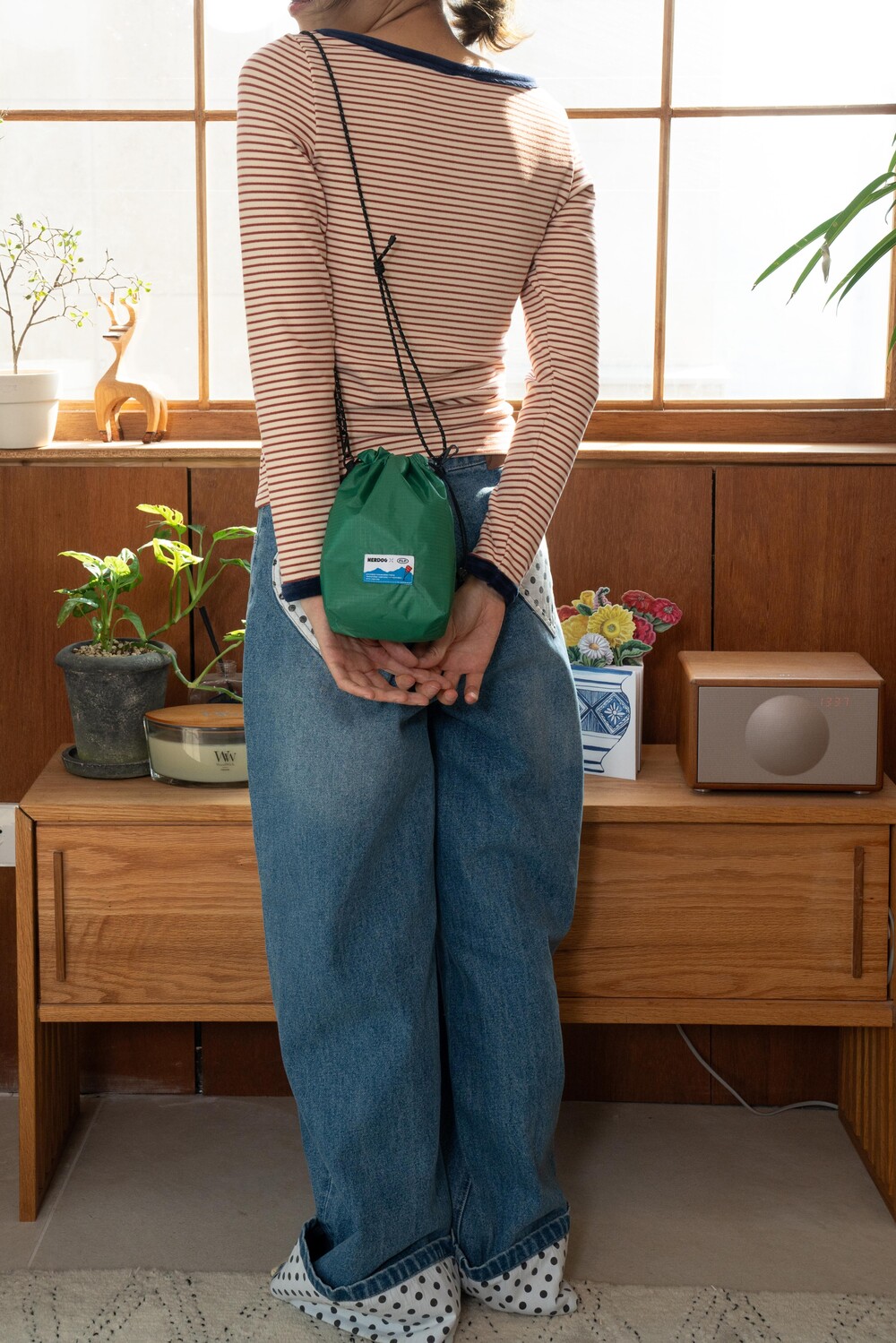 패러글라이더 원단의 경쾌한 텍스처를 가장 가까이 느낄 수 있는 스트링 크로스백입니다.