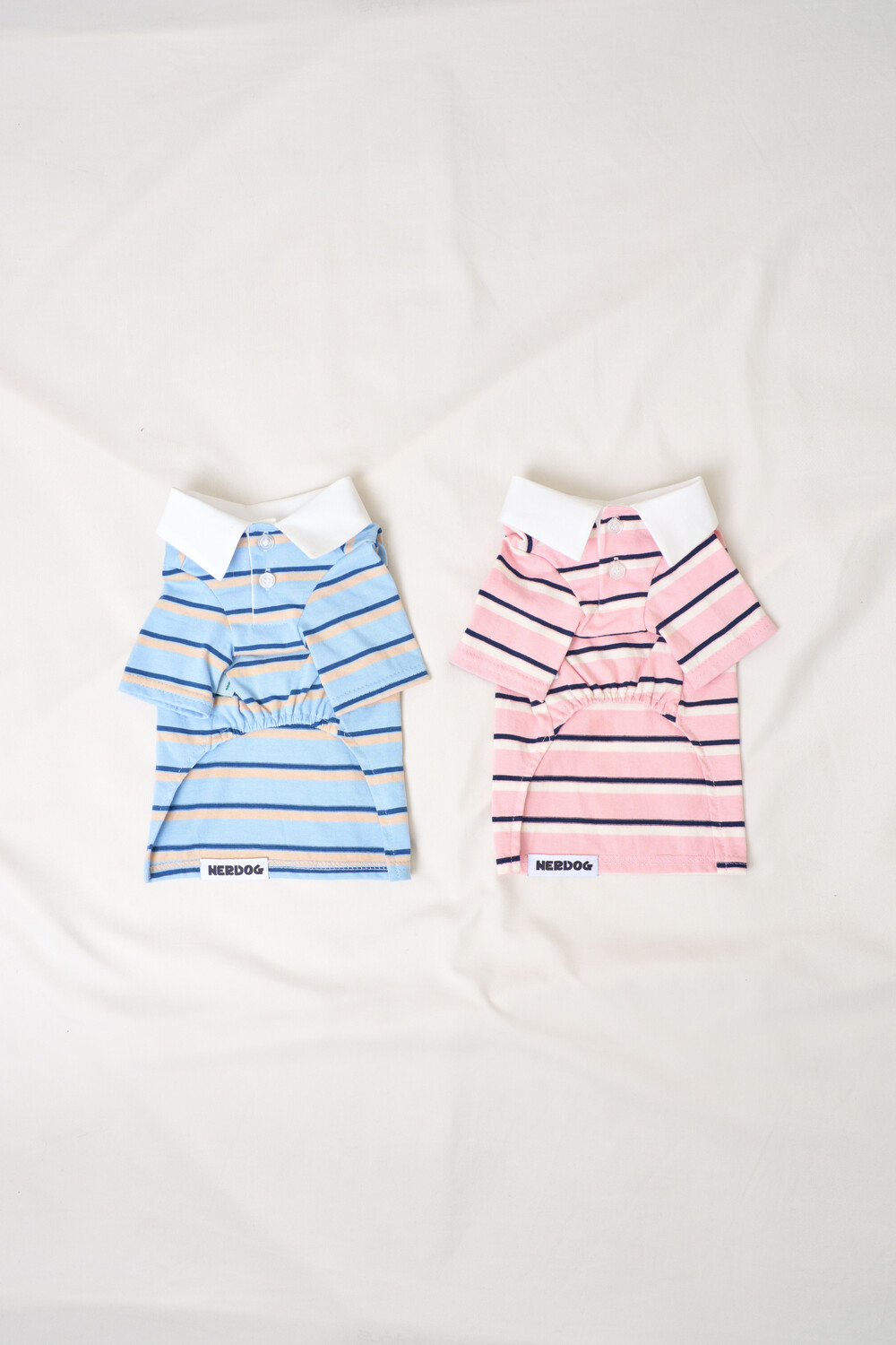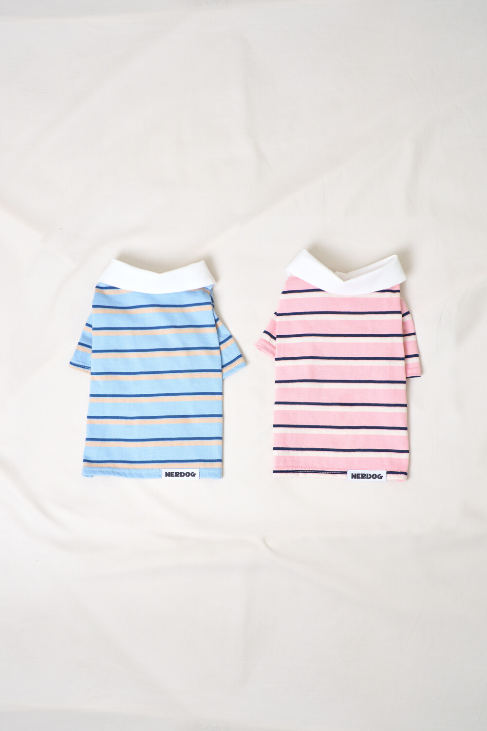 가벼운 코튼 소재로 여름까지 쭉- 입기 좋은 스트라이프 럭비 티셔츠.